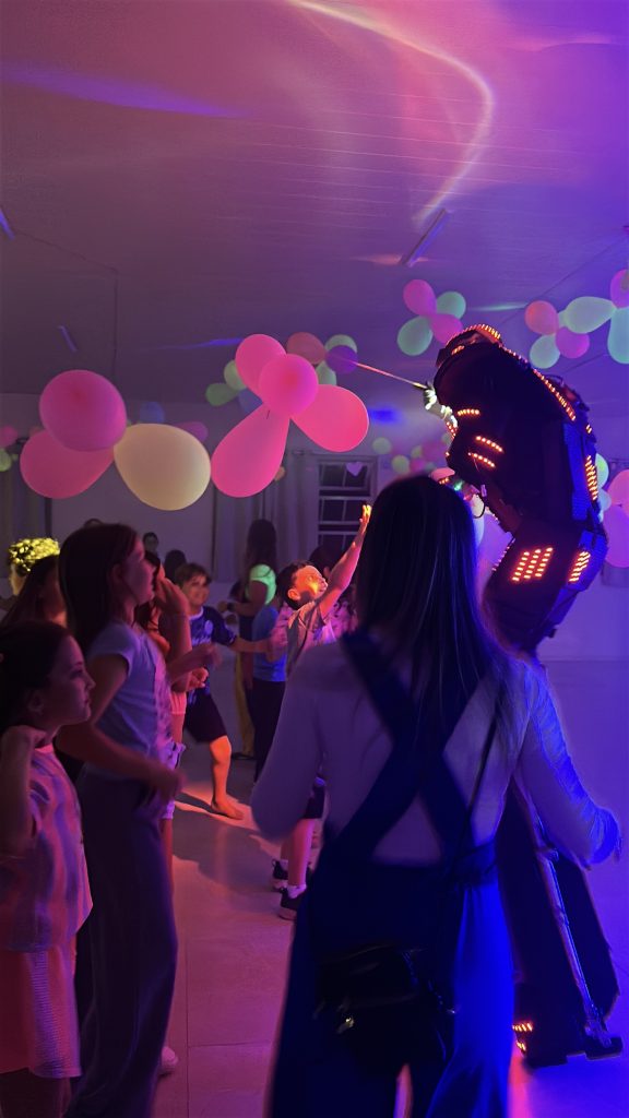 Entre risadas, desafios e novas amizades, as crianças participaram de uma programação repleta de experiências: das atividades recreativas que despertaram a criatividade aos experimentos científicos que instigaram a curiosidade. O brilho da noite se completou com o show de mágica, a balada iluminada pelo robô de LED e o passeio de lanternas, que trouxe o encanto da contação de histórias sob o céu estrelado.