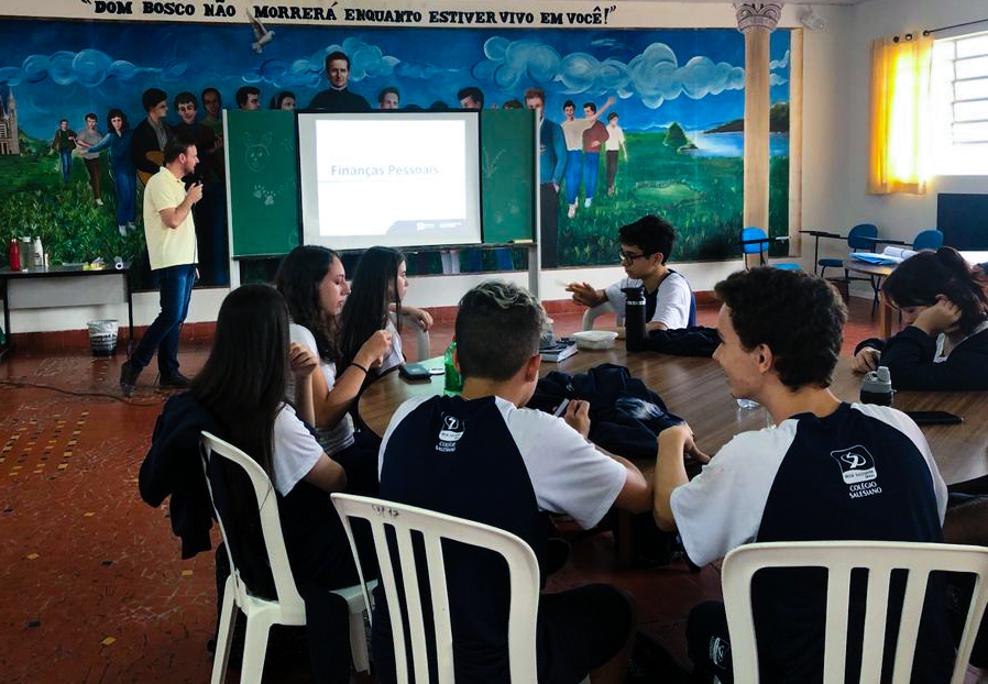 Durante o mês de abril os estudantes participaram da Trilha de Aprofundamento na área da Matemática e suas Tecnologias. Orientados pela professora Bruna Daniel, os estudantes tiveram uma conversa com o formador Sérgio Rafael, por meio de uma parceria com a cooperativa Viacredi e, também, com o engenheiro civil Rhonan Morell. Os três profissionais mostraram aos alunos como a matemática é aplicada nas áreas de licenciatura e pesquisa, com a professora Bruna (Mestre em Ensino de Ciências Naturais e Matemática), na área de finanças e investimentos com o educador Sérgio (Educador para Finanças Pessoais, certificado pelo BACEN) e na área de engenharia civil e topografia com o engenheiro Rhonan.