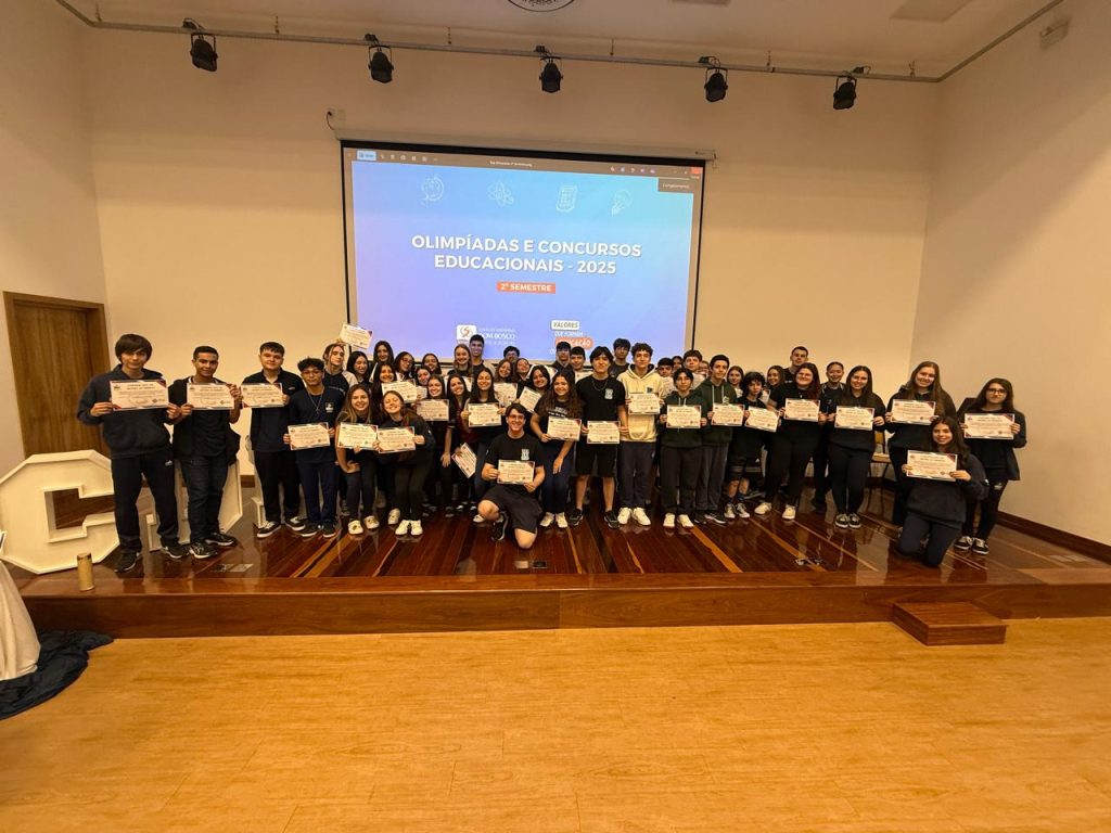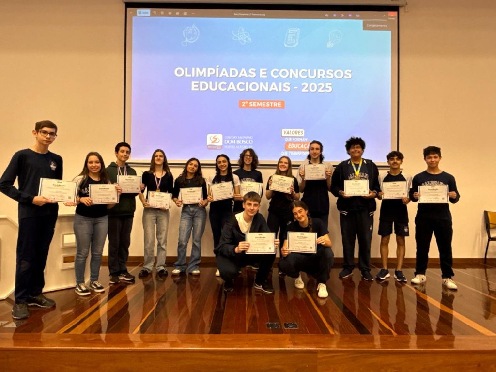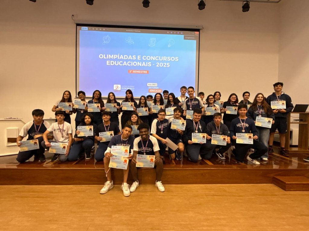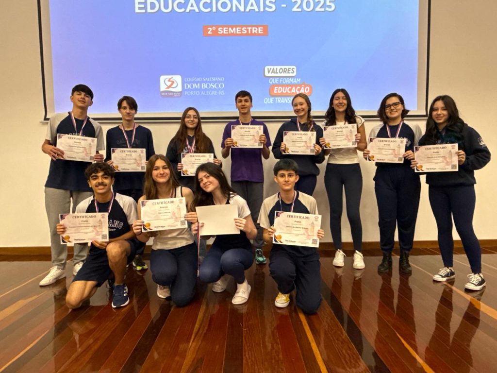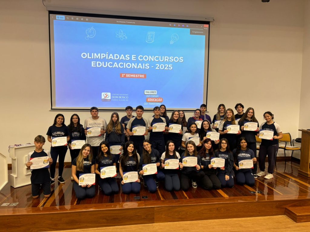 Dando continuidade ao Projeto de Olimpíadas Educacionais 2025, o Colégio Salesiano Dom Bosco de Porto Alegre realizou, na manhã desta terça-feira, 11 de novembro, uma homenagem especial aos estudantes dos Anos Finais e do Ensino Médio que se destacaram nas atividades realizadas ao longo do segundo semestre.