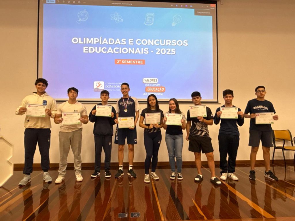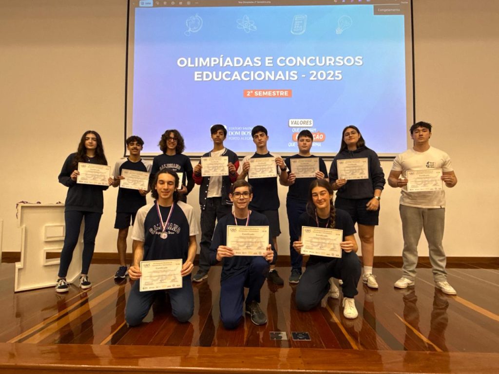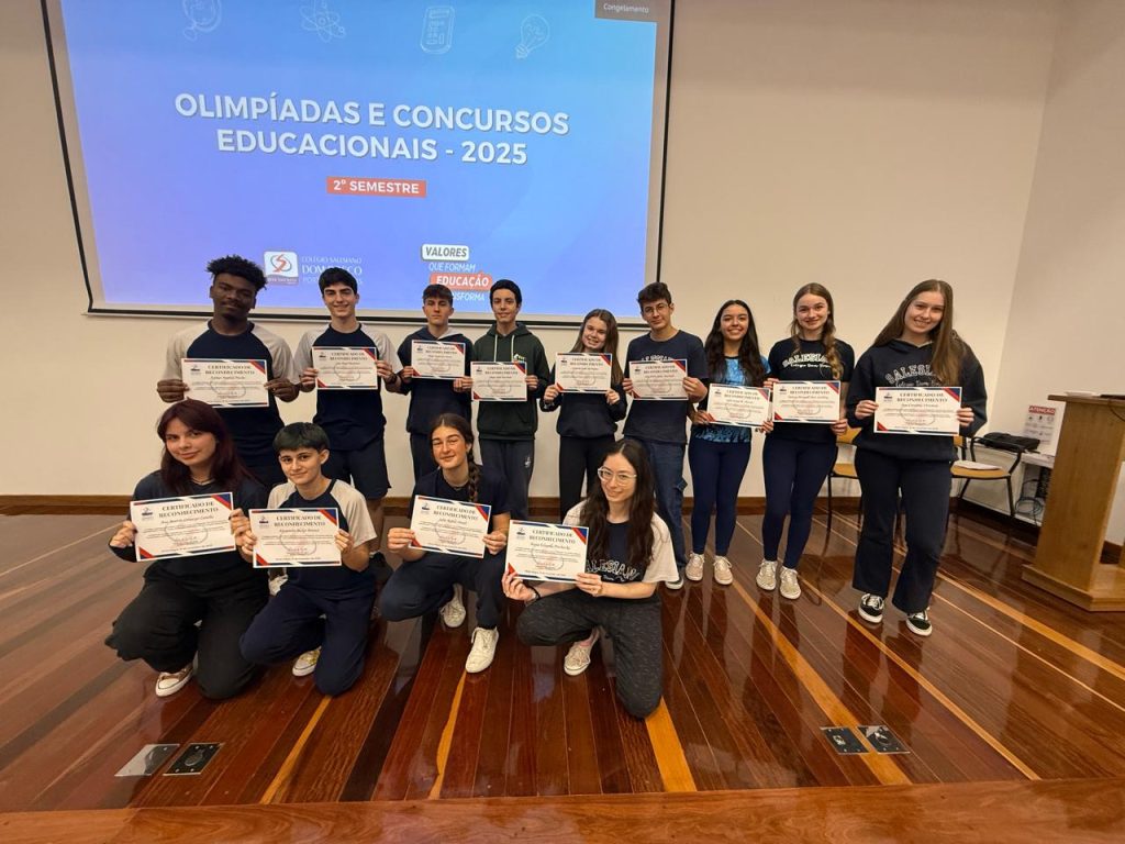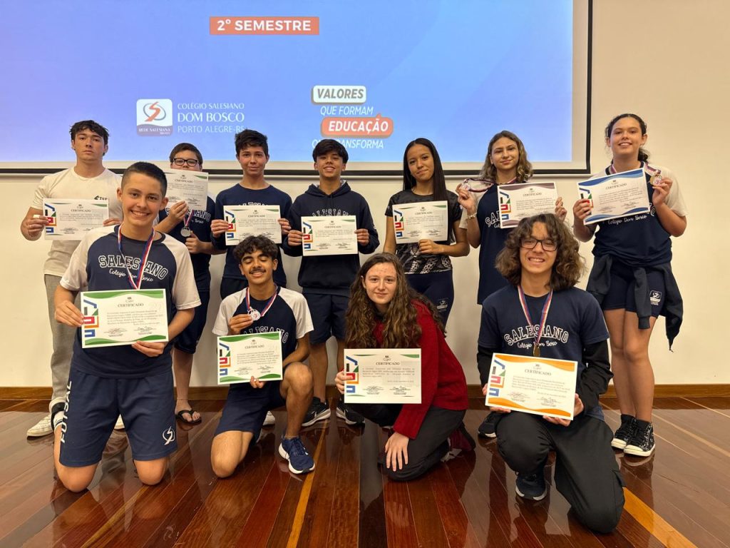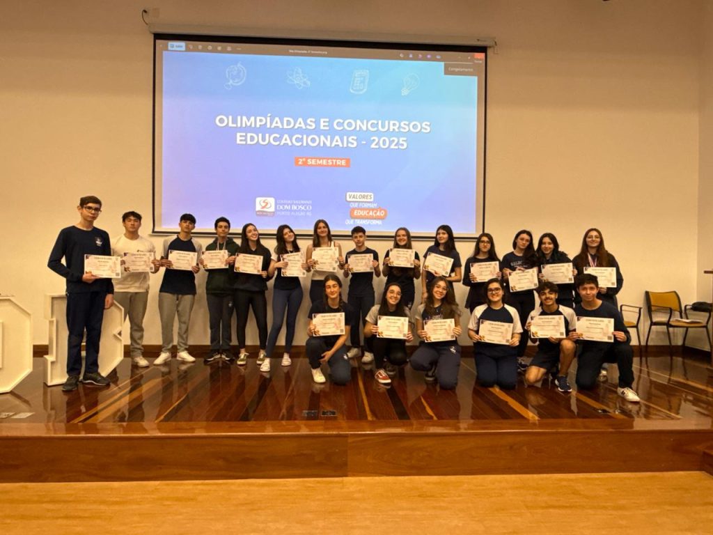 Dando continuidade ao Projeto de Olimpíadas Educacionais 2025, o Colégio Salesiano Dom Bosco de Porto Alegre realizou, na manhã desta terça-feira, 11 de novembro, uma homenagem especial aos estudantes dos Anos Finais e do Ensino Médio que se destacaram nas atividades realizadas ao longo do segundo semestre.