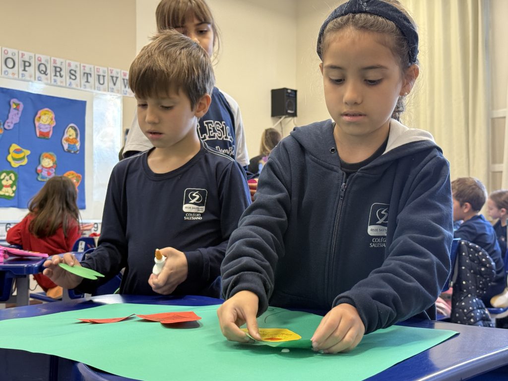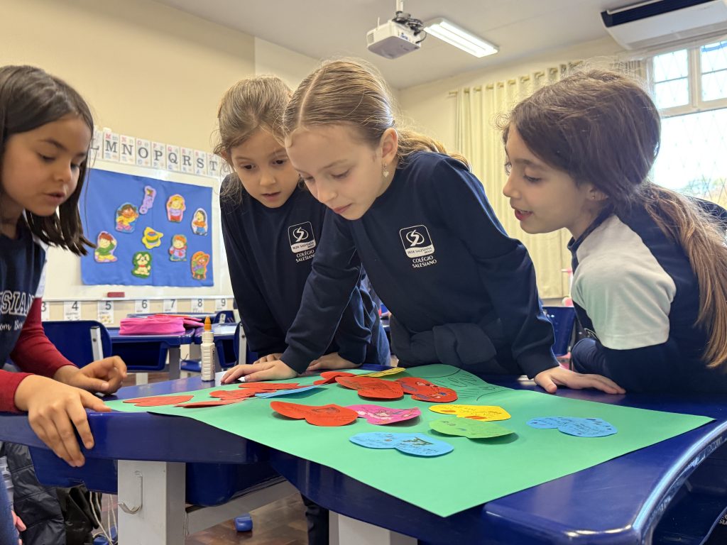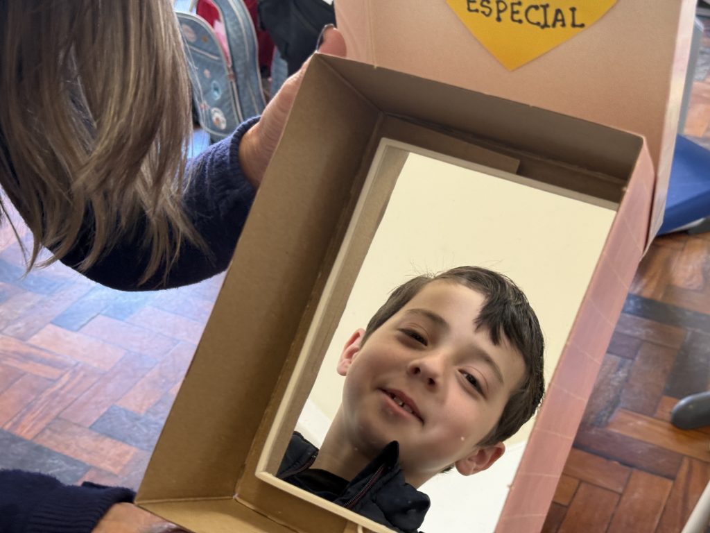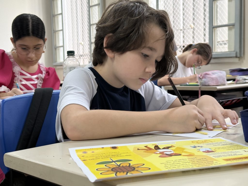 Através da leitura de “Espelho, espelho meu, diga-me quem sou eu!”, obra do escritor, psicólogo, filósofo e educador Lucas Bitencourt, as turmas do 2º ano trabalharam questões sobre autoconhecimento e autoimagem, abordando temas como diversidade, diferença, autoestima, entre outros. “Foi um momento importante para explorarmos tópicos como confiança, sentimentos, convivência em grupo e respeito às individualidades”, explicou a Orientadora Educacional Claudia Bernardes.