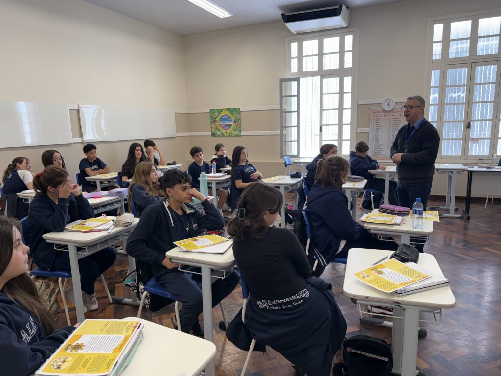 As turmas dos Anos Finais receberam um folder explicativo sobre este mês de conscientização e conversaram sobre a importância de manter hábitos saudáveis, como exercícios físicos e alimentação equilibrada, em busca de uma melhor qualidade de vida. “A importância de mantermos ativos os espaços de escuta, seja em casa ou na escola, também foi abordada com os grupos, concluiu Fávaro Lummertz, Orientador Educacional que conduziu as turmas de 6º a 9º ano neste atividade.