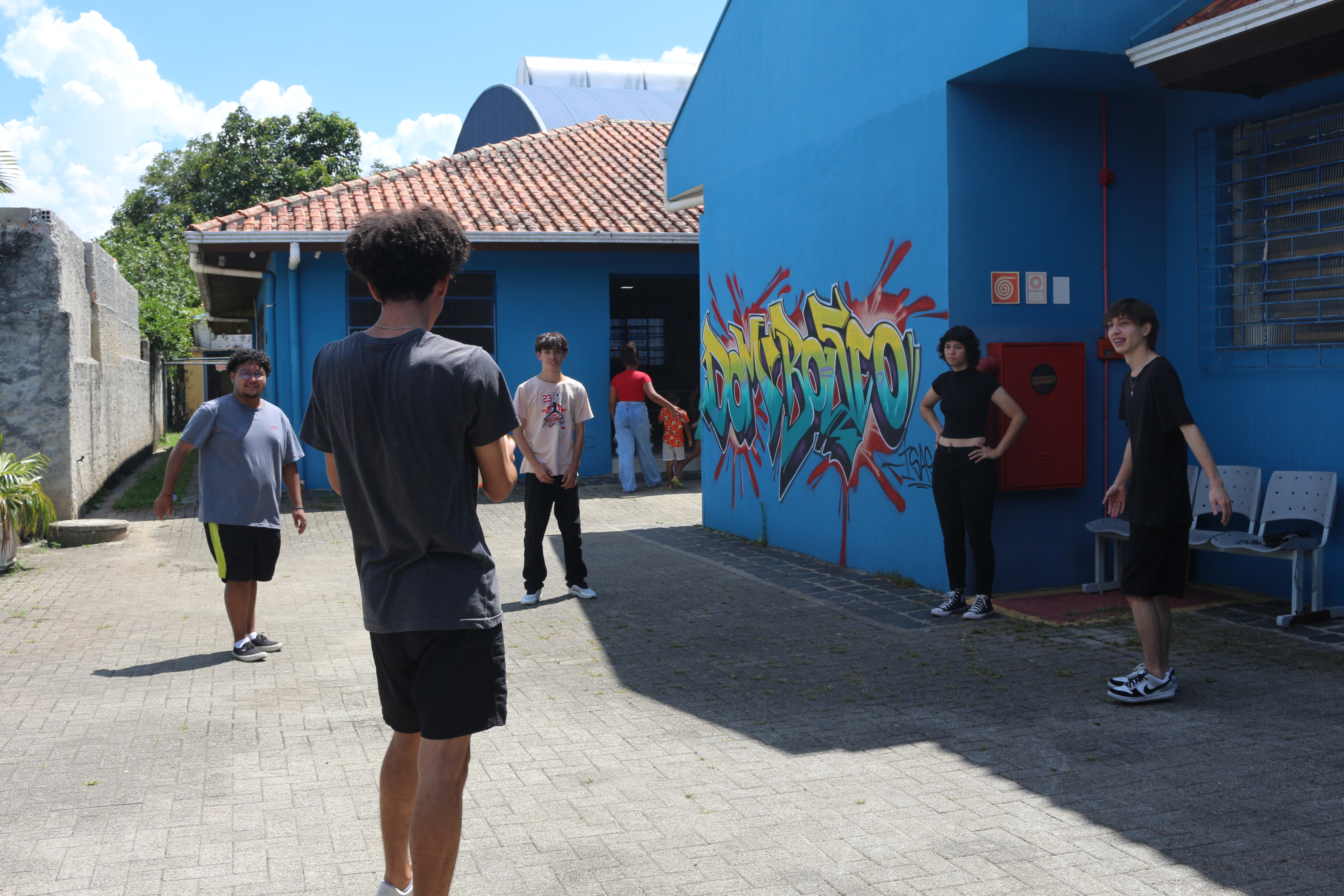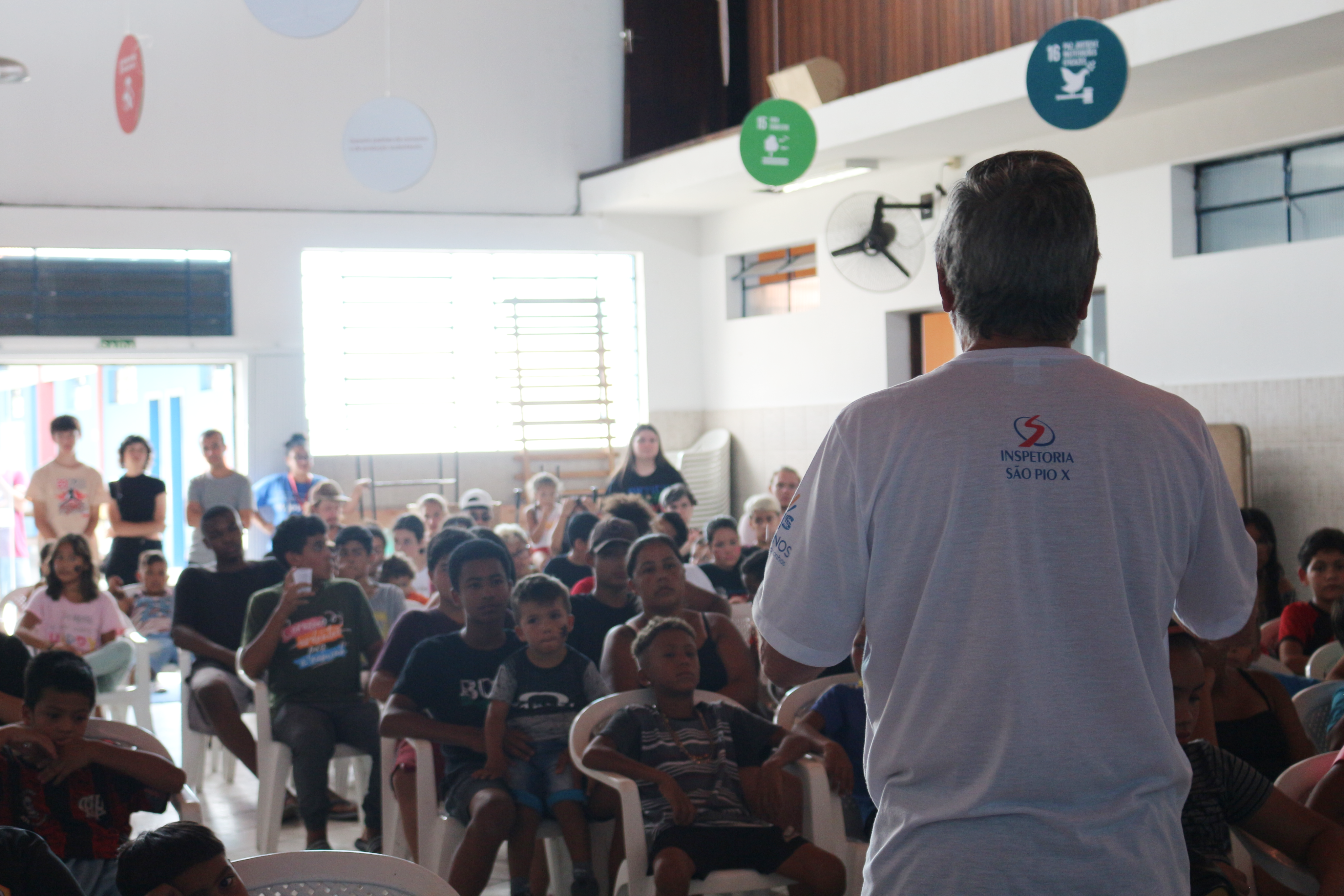 Durante o momento do “Boa Tarde”, os jovens da Articulação da Juventude Salesiana de Curitiba (AJS) encenaram o clássico teatro de Bartolomeu Garelli, teatro o qual marca o início do oratório salesiano.