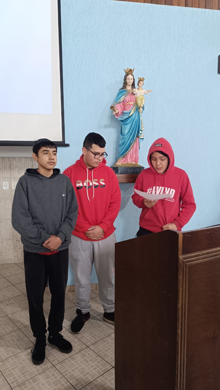 Além disso, como preparação para esse momento especial, nossas crianças e adolescentes tiveram a oportunidade de participar de uma atividade na capela durante a semana. Nessa ocasião, eles escreveram seus pedidos e agradecimentos, os quais foram entregues a Jesus por meio da intercessão de Dom Bosco e Nossa Senhora Auxiliadora.
