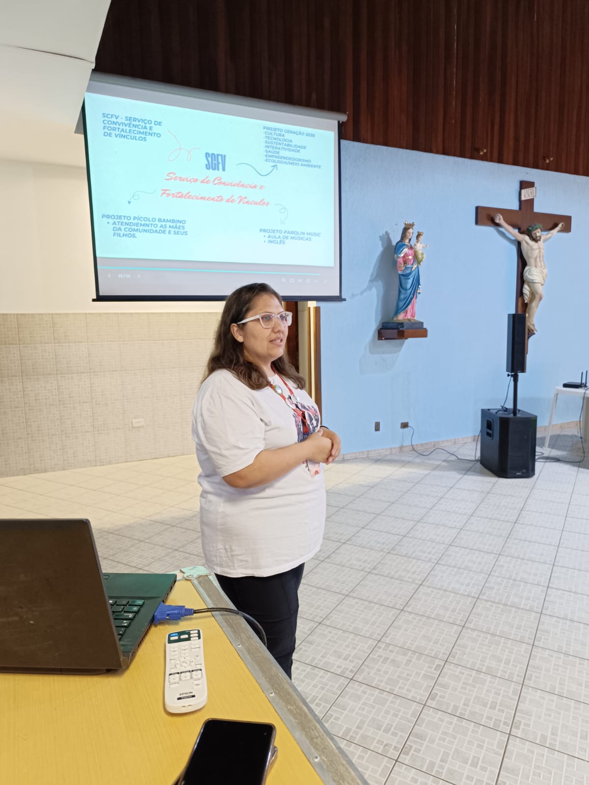 A recepção aos presentes ocorreu às 19h30 com um café, seguido por uma abertura com a Diretora Executiva, Letícia Konoval, que iniciou o momento de oração e reflexão com uma música salesiana. A Coordenadora de Pastoral, Kaylla Maria, trouxe uma reflexão sobre uma passagem bíblica, conectando-a ao tema do encontro e propondo aos participantes uma reflexão sobre os sonhos de Natal de sua infância.