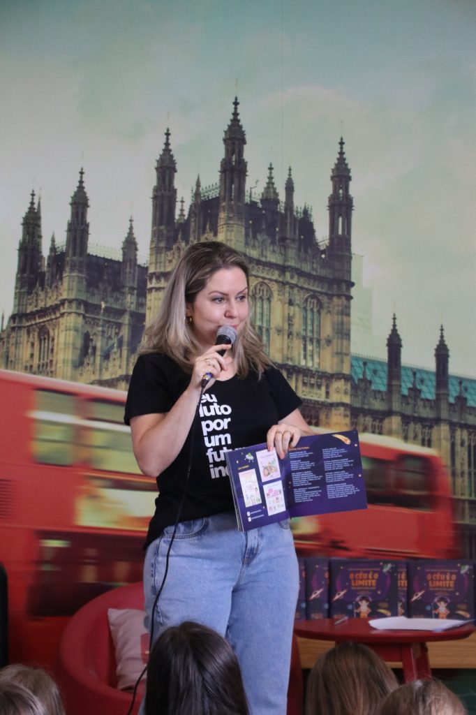 Durante todo o mês de setembro, nossas turmas viveram uma experiência literária única com o Projeto Autor Presente, coordenado pela professora Marciele Bernardi. A proposta uniu a leitura em língua inglesa, a criatividade e o encontro inspirador com a autora Aline Fátima do Nascimento Magro, ex-aluna de nossa escola.