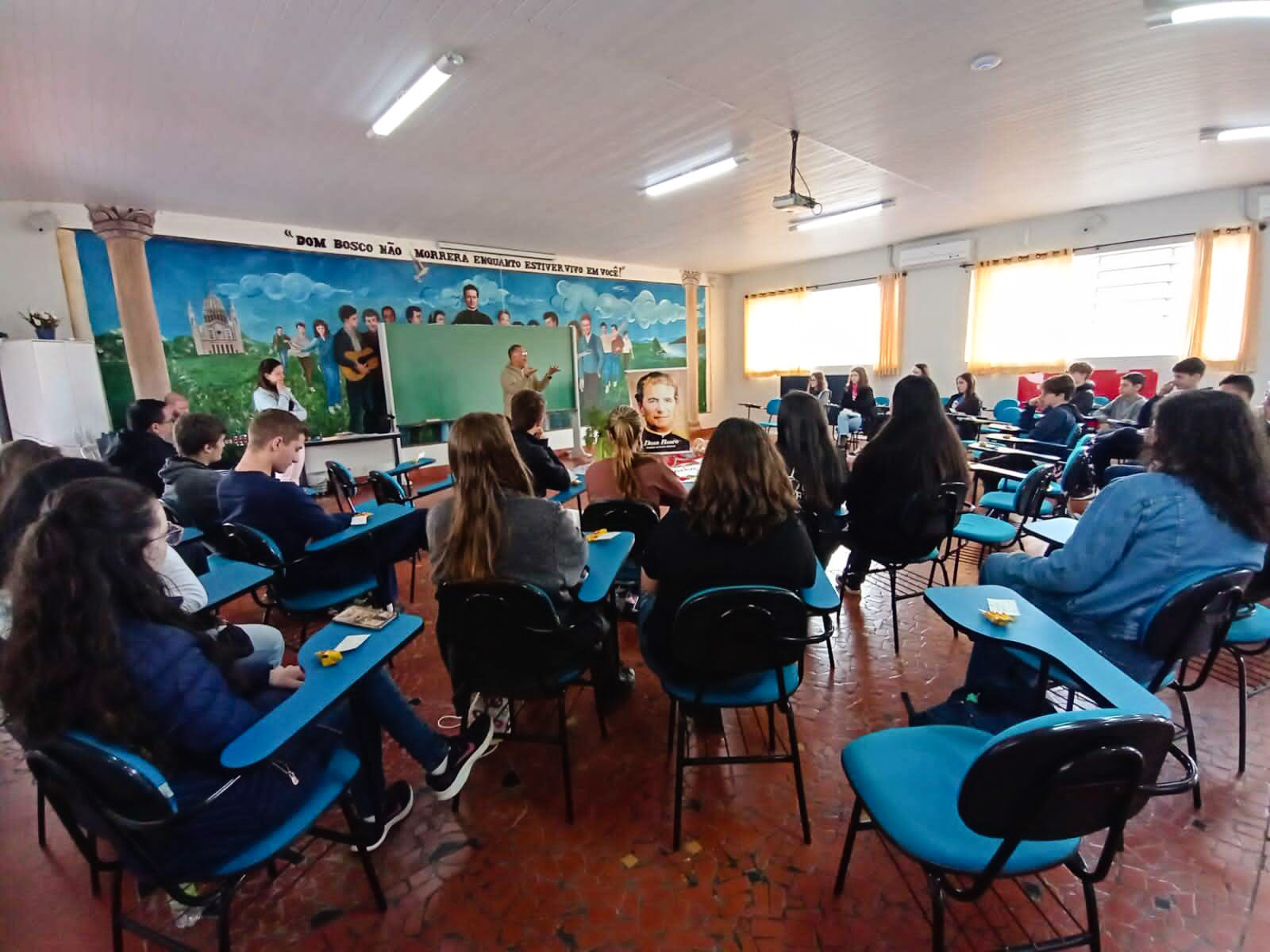 Desta forma, buscando dinamizar as vocações no protagonismo juvenil como a grande meta no trabalho com o jovem, no dia 20 de agosto de 2022, no Colégio São Paulo em Ascurra, realizou-se um Encontro Vocacional com o tema “Minha vocação é um dom!”. O evento, conduzido pelo Padre Salesiano Jeferson, contou com a participação da diretora executiva do Colégio São Paulo, Maria Elena F. Tomio, do coordenador de pastoral João Jesus de Paula, assessora de pastoral e da AJS, Bruna Daniel, representante do Grupo de Animação Missionária Juvenil (GAM) de Ascurra, Laís Fachini, a catequista da Paróquia Márcia B. Kuhnen, além dos missionários participantes da Animação Missionária Juvenil (AMJ) de 2022 e dos adolescentes em preparação para a Crisma.