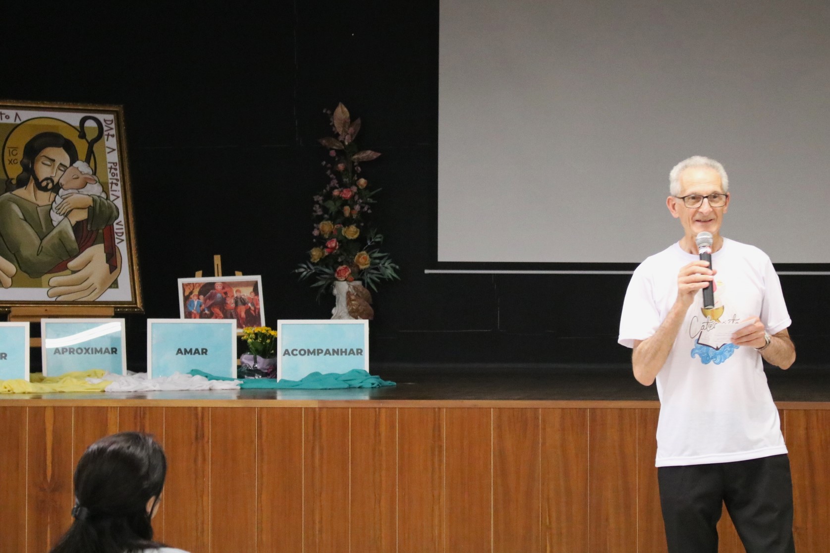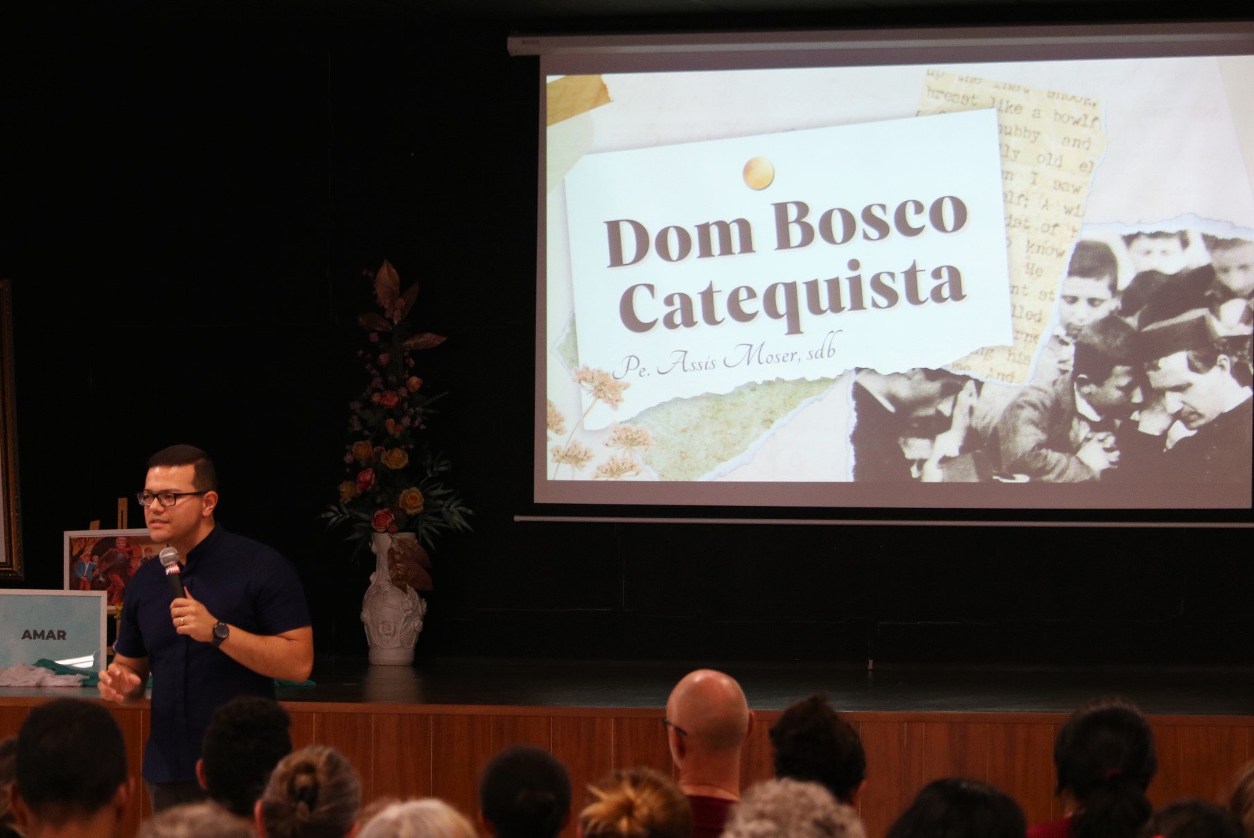 Ainda na manhã, o P. Diego da Silva apresentou as caraterísticas de São João Bosco como catequista. Antes dos trabalhos das oficinas, o P. Asídio Deretti conversou com os catequistas sobre a sua missão na vida das comunidades. Depois, os catequistas se dividiram para partilhar, refletir e trabalhar sobre onde os desafios da catequese hoje. Ao ouvir sobre o encontro de Dom Bosco com o jovem Miguel Magone, foram questionados sobre onde estão as juventudes. Ao final assumiram o compromisso de viver de forma mais profunda os elementos essenciais do catequista salesiano: Amar, Aproximar, Propor e Acompanhar. Os compromissos foram apresentados junto ao Cristo no encerramento com a Adoração Eucarística.