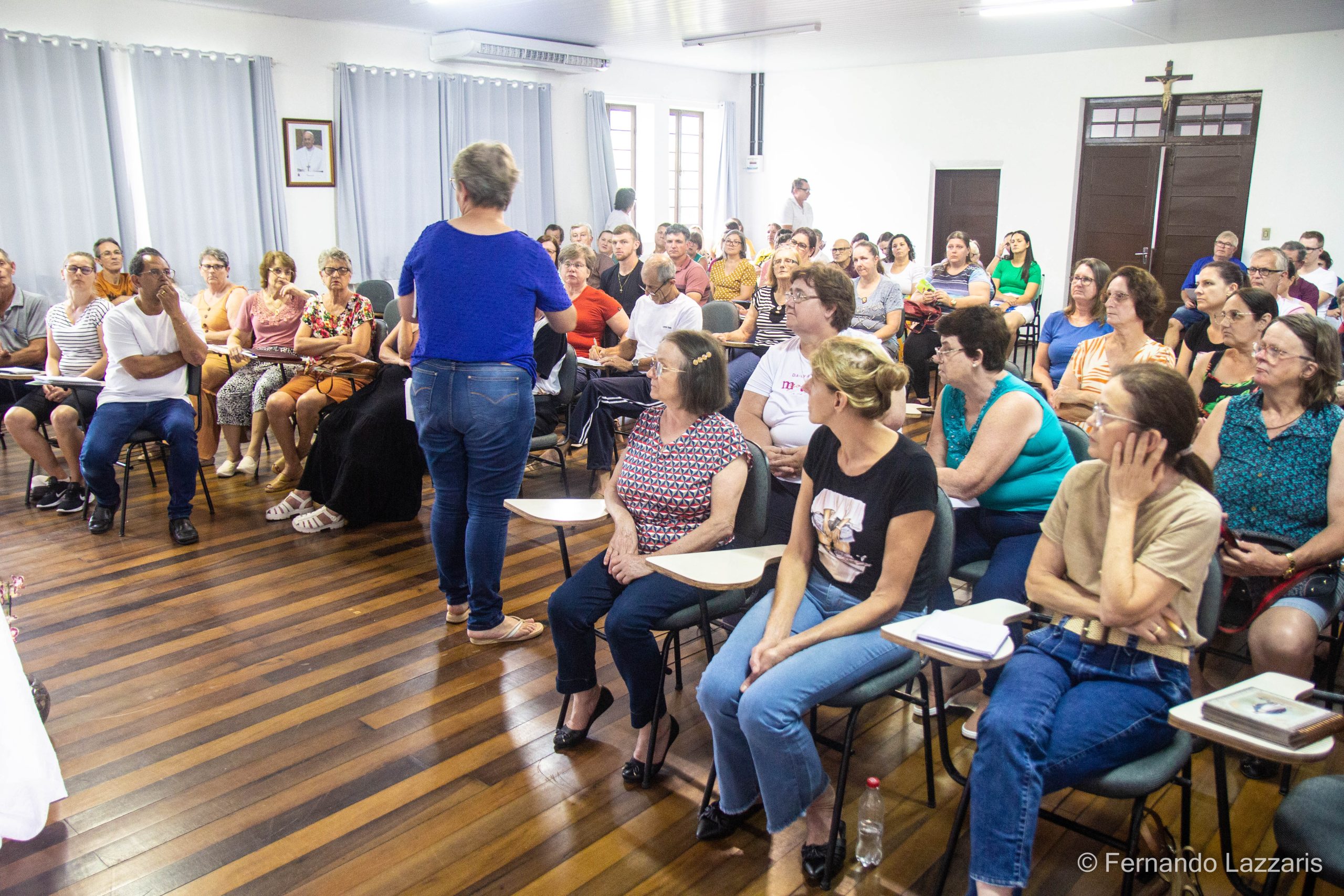 A Comunidade Paroquial Sagrado Coração de Jesus realizou um encontro de formação para agentes de pastoral, coordenadores e Ministros sobre o novo Missal e sobre liturgia. A reunião O pároco, P. Tarcizio apresentou as mudanças do novo missal e em seguida a coordenadora da Liturgia paroquial, Evanir Bisewski Ronchi relembrou algumas normas contidas no Diretório Litúrgico da diocese de Joinville.
