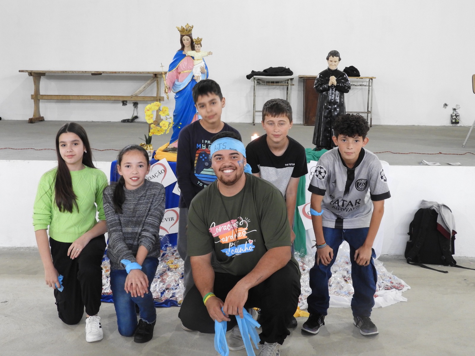 Foram 120 catequizandos do crisma e jovens da Articulação da Juventude Salesiana – AJS que participaram de animações, brincadeiras e orações conduzidas pela Animação Missionária Juvenil – AMJ e pelo Grupo de Animação Missionária – GAM.