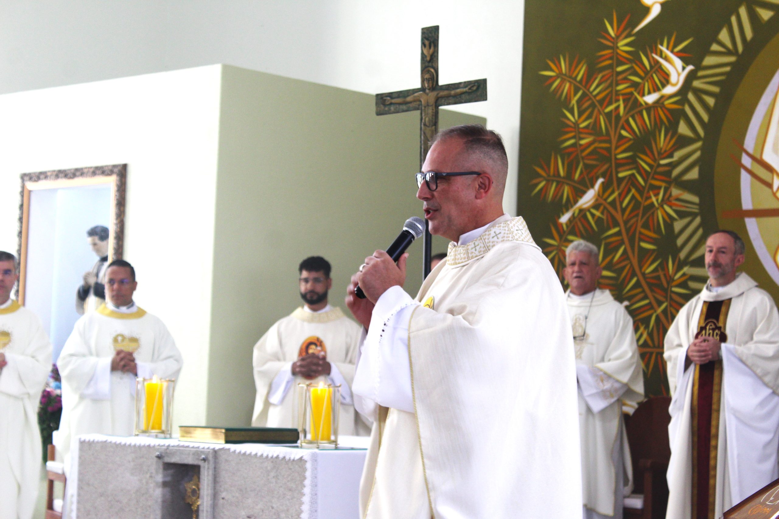 Padre Gabriel Romero, em sua homilia, refletiu sobre o acompanhamento. “É muito bonito ver tanta gente que veio de tantos lugares e de tão longe para acompanhar este momento. Mas é bonito e importante também poder continuar acompanhando a continuidade desse ministério”.