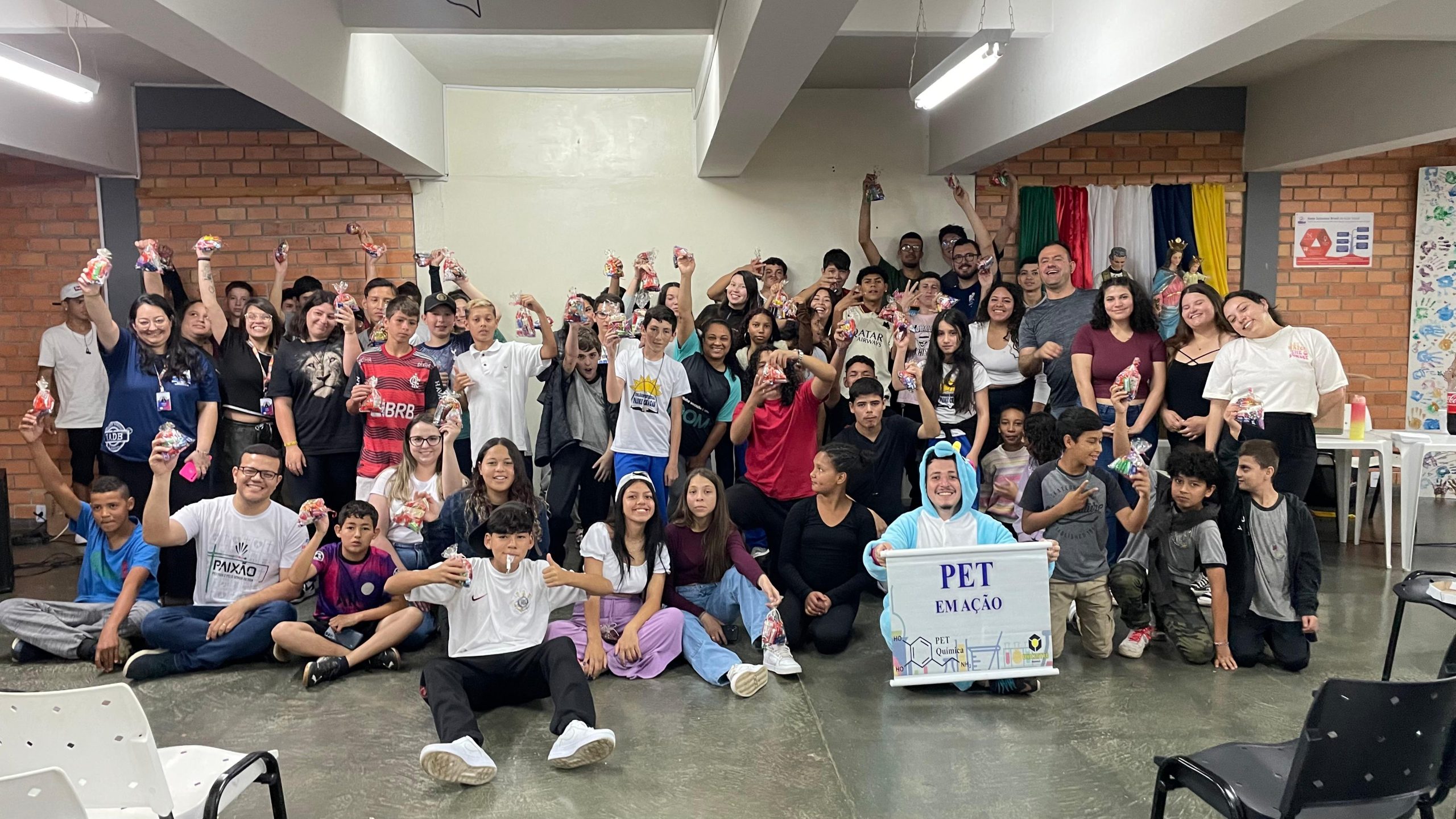 Também recebemos doces e picolé do PET Química da Universidade UNICENTRO, o qual por meio da pesquisa, ensino e extensão levam a universidade para o território, atingindo os nossos futuros estudantes de universidades públicas!