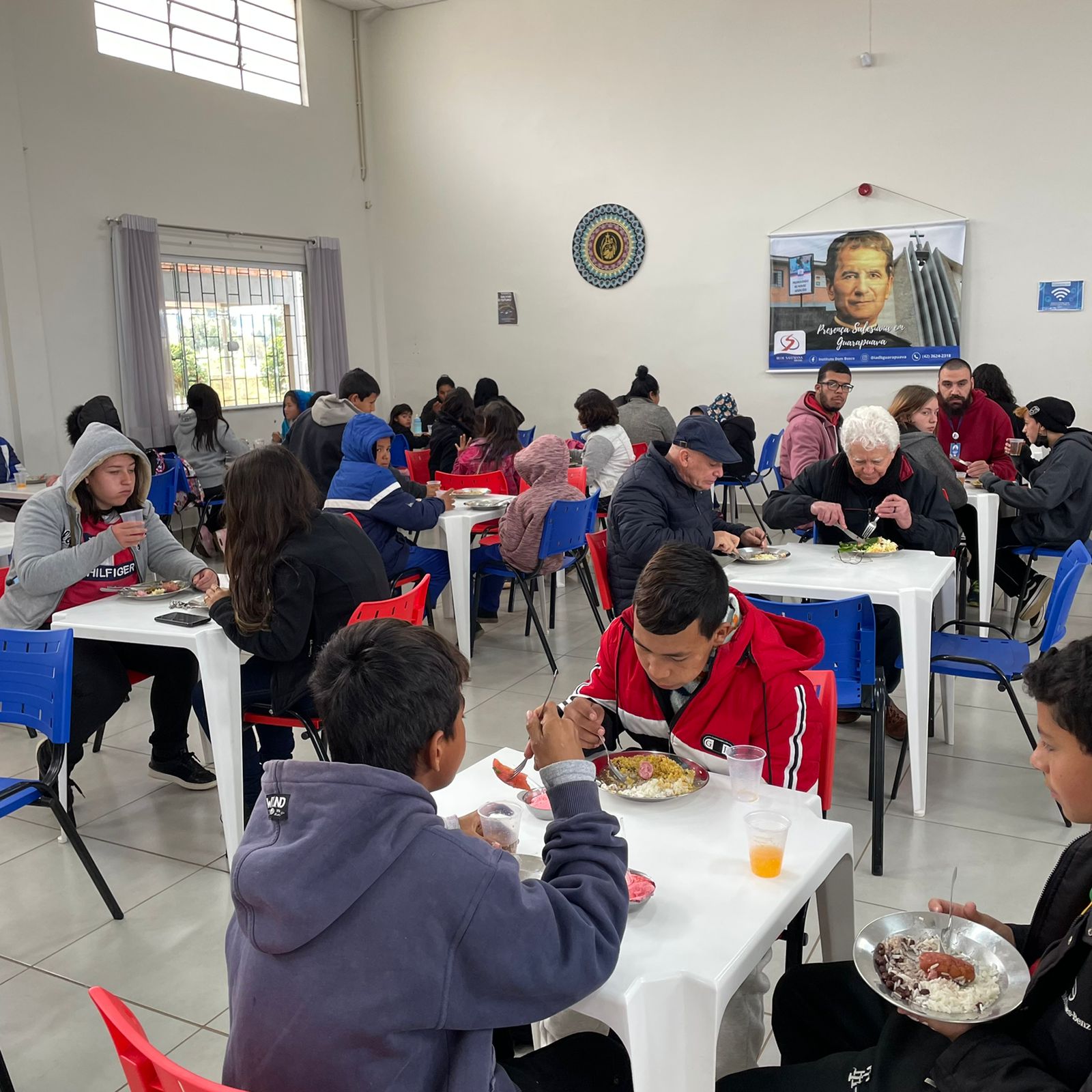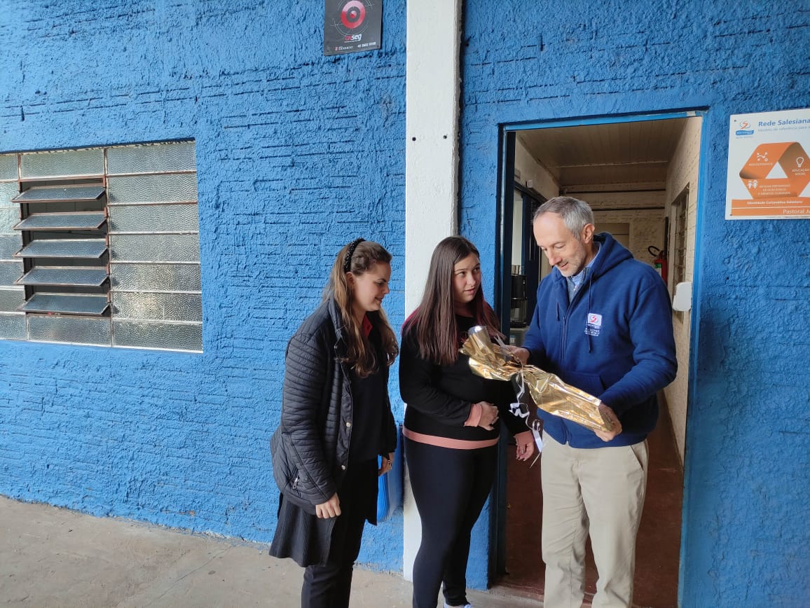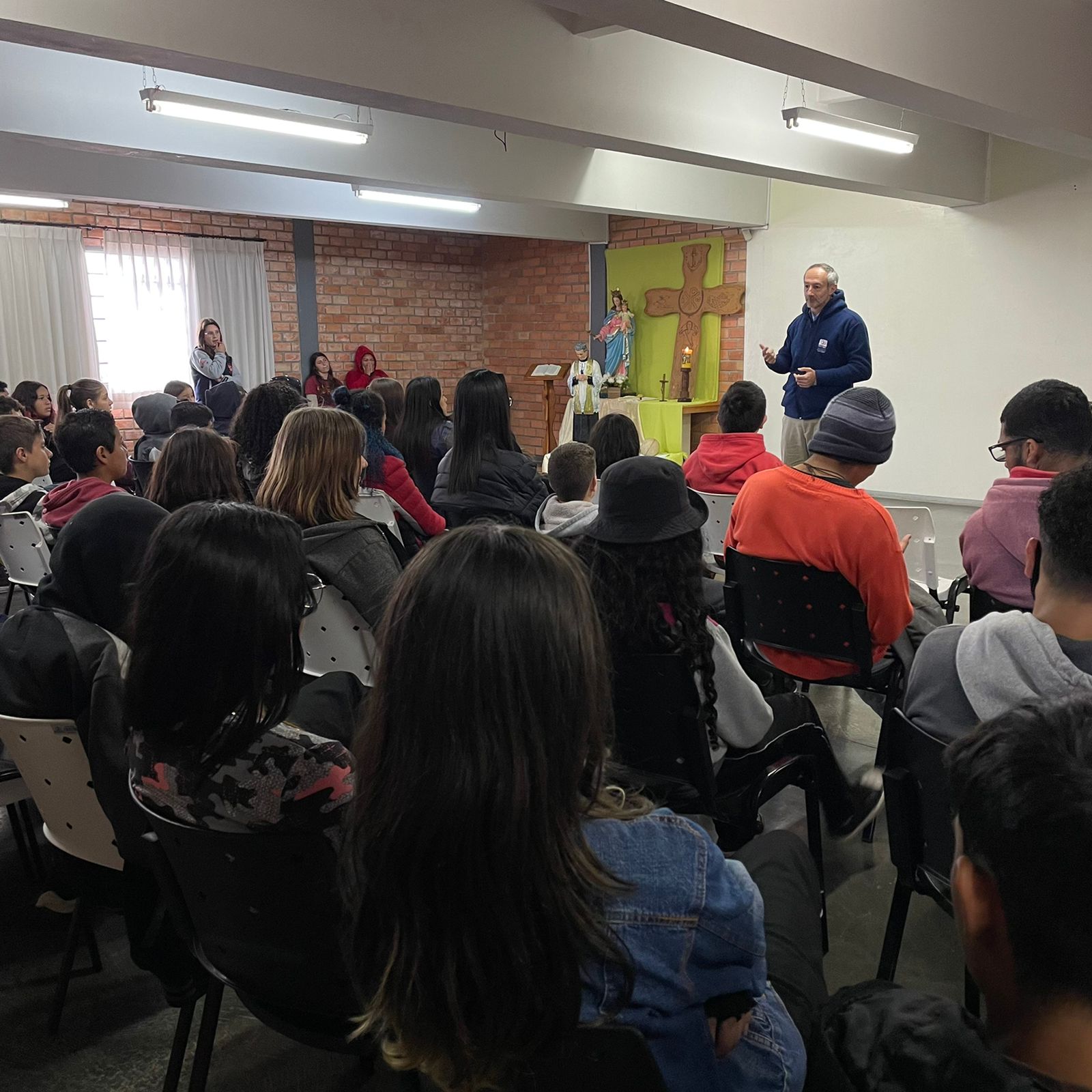 Pela manhã os padres da presença salesiana de Guarapuava juntamente com os educadores do IADB e o P. Gabriel, tiveram um momento de conexão e apresentação da equipe. Logo após o café, foram apresentadas as dependências da Instituição. Com os educandos o P. Gabriel teve a oportunidade de ter uma conversa e deixar uma reflexão sobre Dom Bosco e a realidade dos jovens da época.