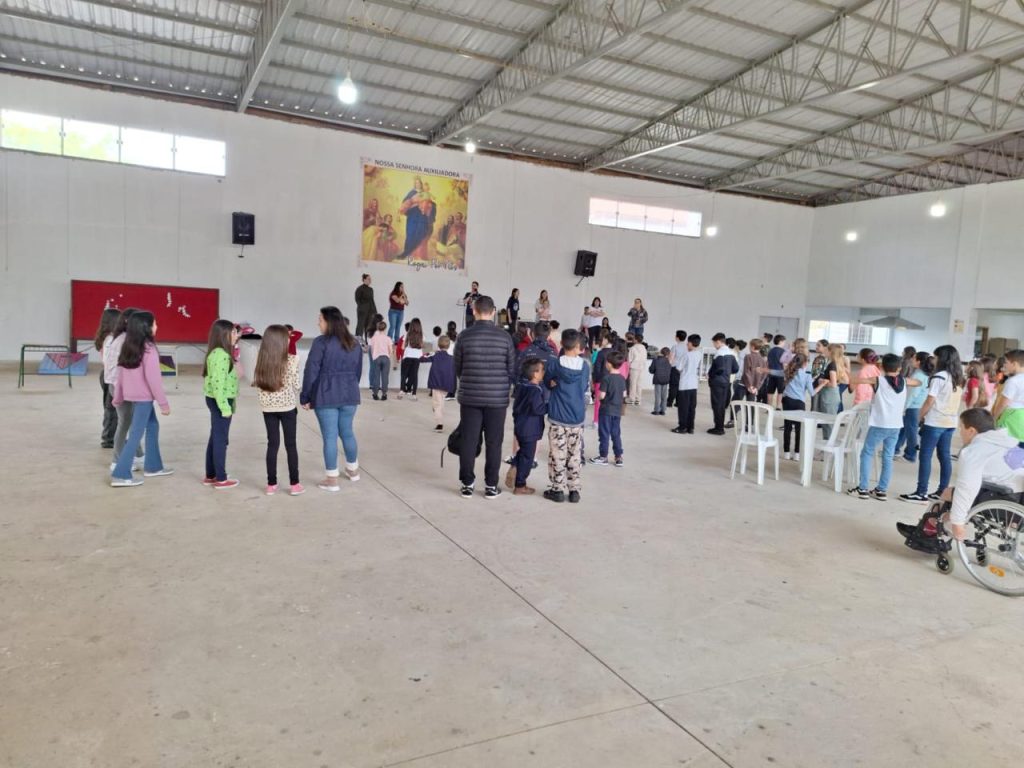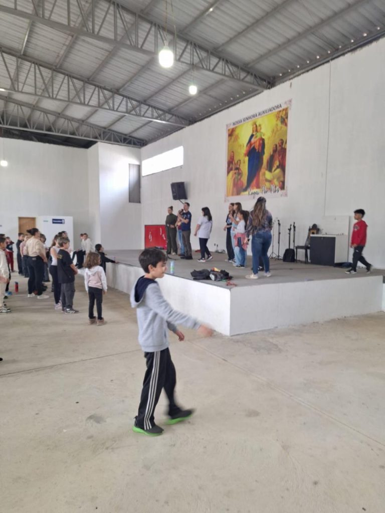 Na manhã do dia 4 de outubro, o salão social da Matriz Nossa Senhora Auxiliadora, em Ponta Grossa/PR, se encheu de alegria, cor e fé com a realização do evento em comemoração ao Dia das Crianças, promovido com dedicação e carinho pelos catequistas da paróquia. Das 9h30 às 11h30, crianças da comunidade vivenciaram momentos especiais de acolhida, oração, diversão e partilha.