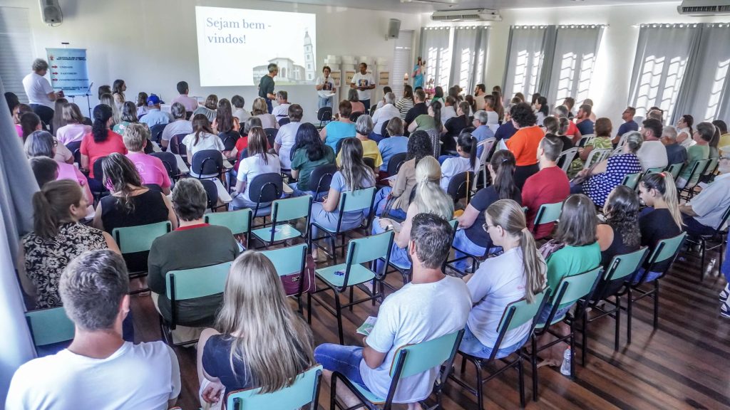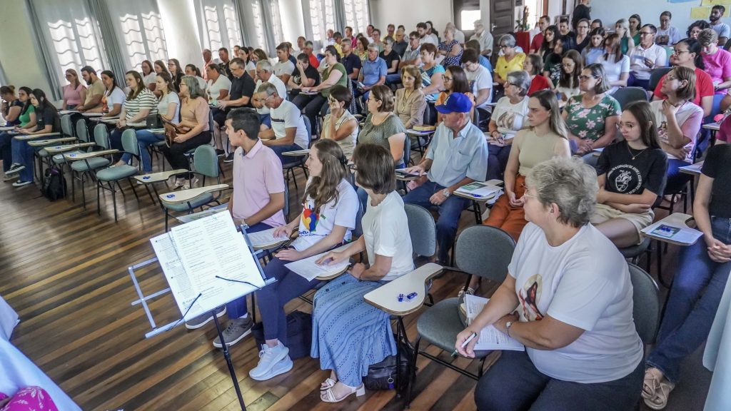 Em seguida, houve um momento de partilha sobre o Projeto do Dízimo para os próximos quatro anos e sobre o Centenário da Arquidiocese de Joinville, destacando a participação da paróquia nos eventos comemorativos previstos para 2026 e 2027.