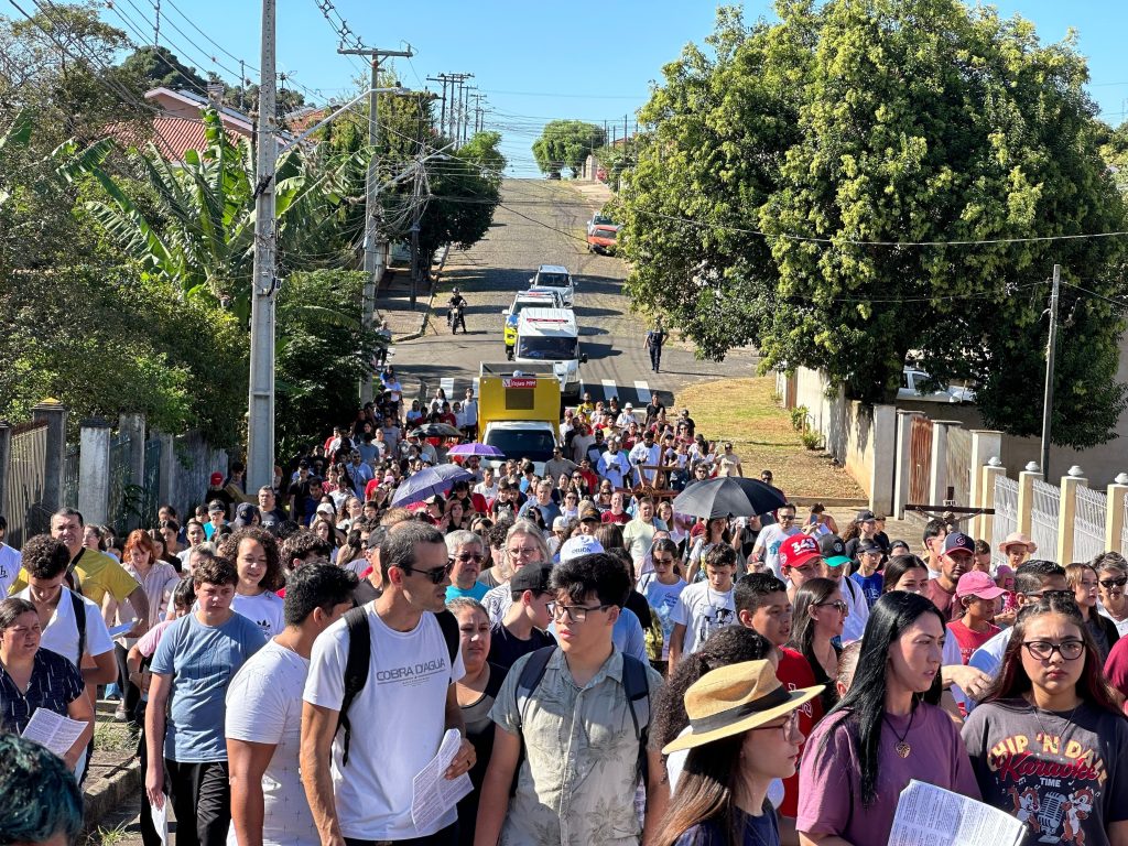 Jovens das paróquias do Setor 3 da Diocese de Ponta Grossa percorrem 2,7 km em Via-Sacra pelas ruas de Uvaranas em preparação para o sacramento da Crisma.