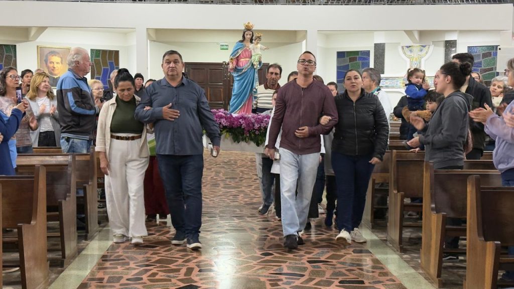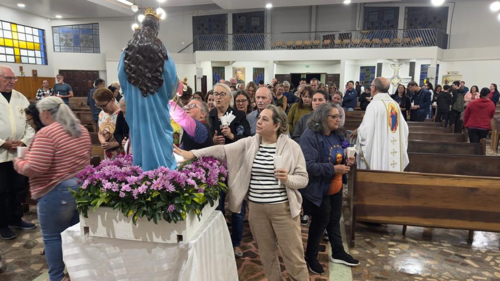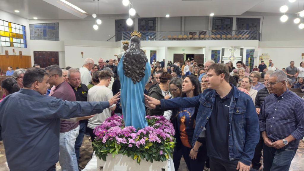 Em clima de profunda devoção, a Paróquia Nossa Senhora Auxiliadora realizou, na noite desta segunda-feira (24), a Missa de Consagração das Famílias, reunindo grande número de fiéis na igreja matriz, não obstante a tempestade de granizo que caiu sobre a cidade nesta tarde. A celebração, presidida pelo pároco, Pe. Renato dos Santos, reafirmou a missão da paróquia de acompanhar e fortalecer espiritualmente as famílias que caminham sob a proteção materna de Maria Auxiliadora.