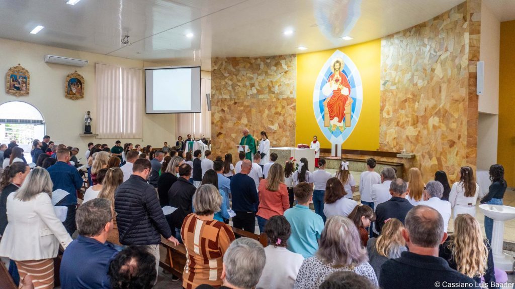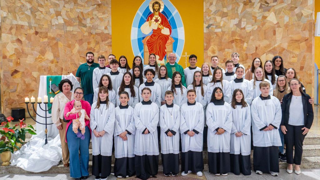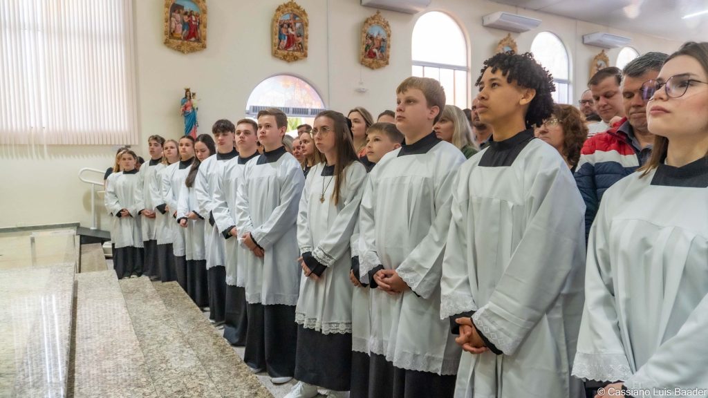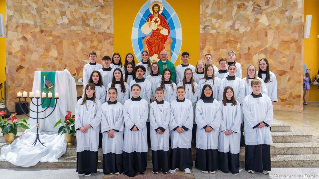 Na manhã do dia 28 de setembro, a Comunidade Paroquial Sagrado Coração de Jesus, em Massaranduba/SC, viveu um momento de alegria e fé com a investidura de 29 novos Acólitos. Durante o mês de agosto, os jovens foram preparados pela Coordenação Paroquial de Coroinhas e Acólitos para assumirem essa missão especial de serviço ao altar e à comunidade.