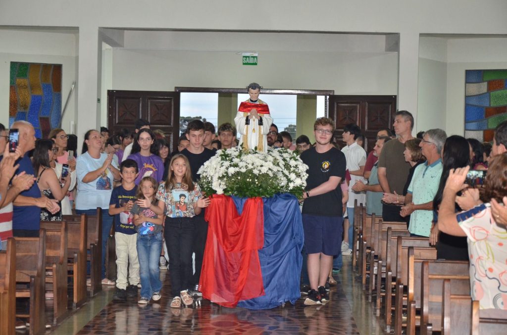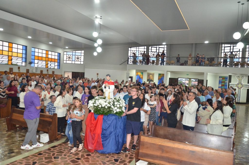 Celebração realizada na noite de 31 de janeiro, na Igreja Matriz, reuniu comunidade, crianças, adolescentes e jovens em torno da relíquia de Dom Bosco.