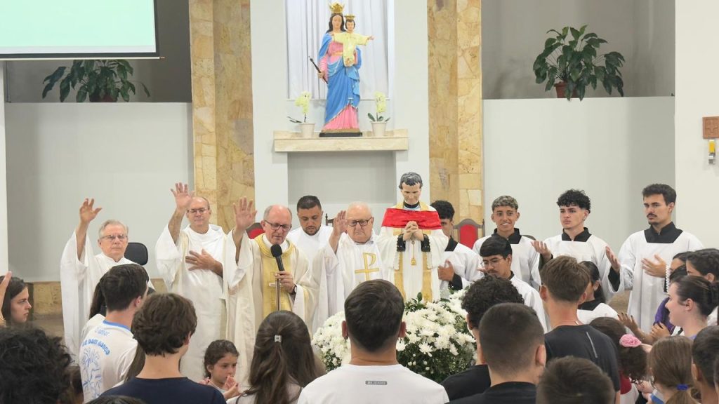 O encerramento aconteceu de forma profundamente simbólica: crianças, adolescentes e jovens foram convidados a se aproximar da imagem de Dom Bosco, juntamente com a relíquia, para receberem uma bênção especial.