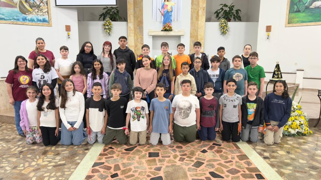 O dia culminou com a Celebração Eucarística junto às famílias, marcando um passo importante na caminhada das crianças rumo à Primeira Comunhão, que acontecerá no mês de novembro.