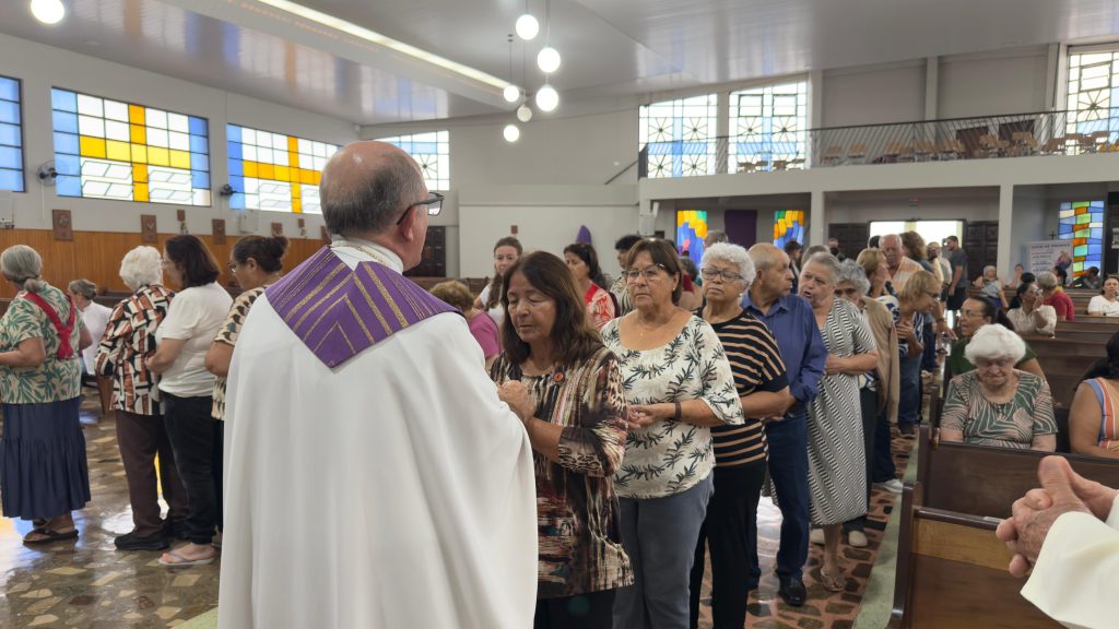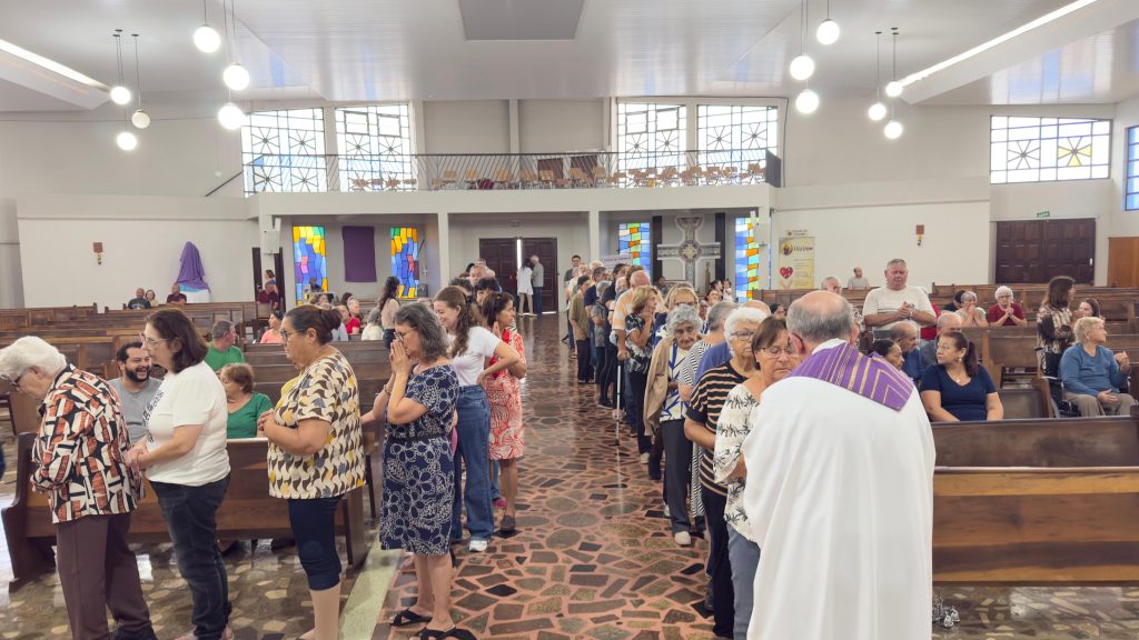 A coordenação do momento esteve sob responsabilidade do Pe. Renato dos Santos, pároco da comunidade, que conduziu a celebração com espírito de acolhida e cuidado pastoral.