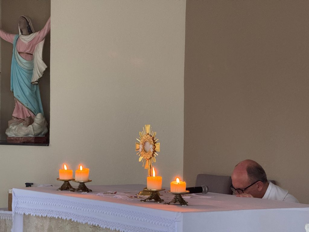 Ao longo da tarde, os participantes foram convidados a vivenciar um momento de Adoração ao Santíssimo Sacramento, encerrando o retiro com a bênção do Santíssimo e avaliação.
