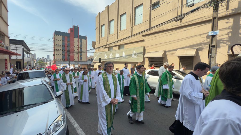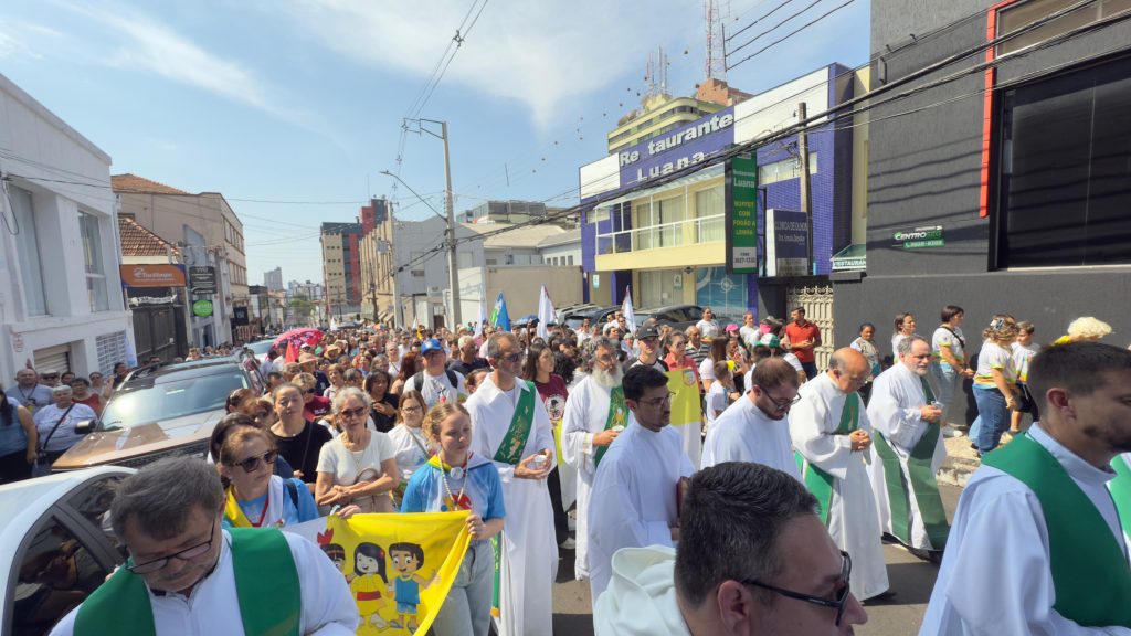 No último domingo, 5 de outubro, a cidade de Ponta Grossa acolheu uma expressiva manifestação de fé e comunhão com a realização da Solene Peregrinação Missionária Diocesana, promovida pelo Conselho Missionário Diocesano (COMIDI). O evento reuniu missionários, fiéis e clérigos de todas as paróquias da Diocese, marcando um momento histórico de unidade eclesial, especialmente significativo no contexto do Ano Jubilar.